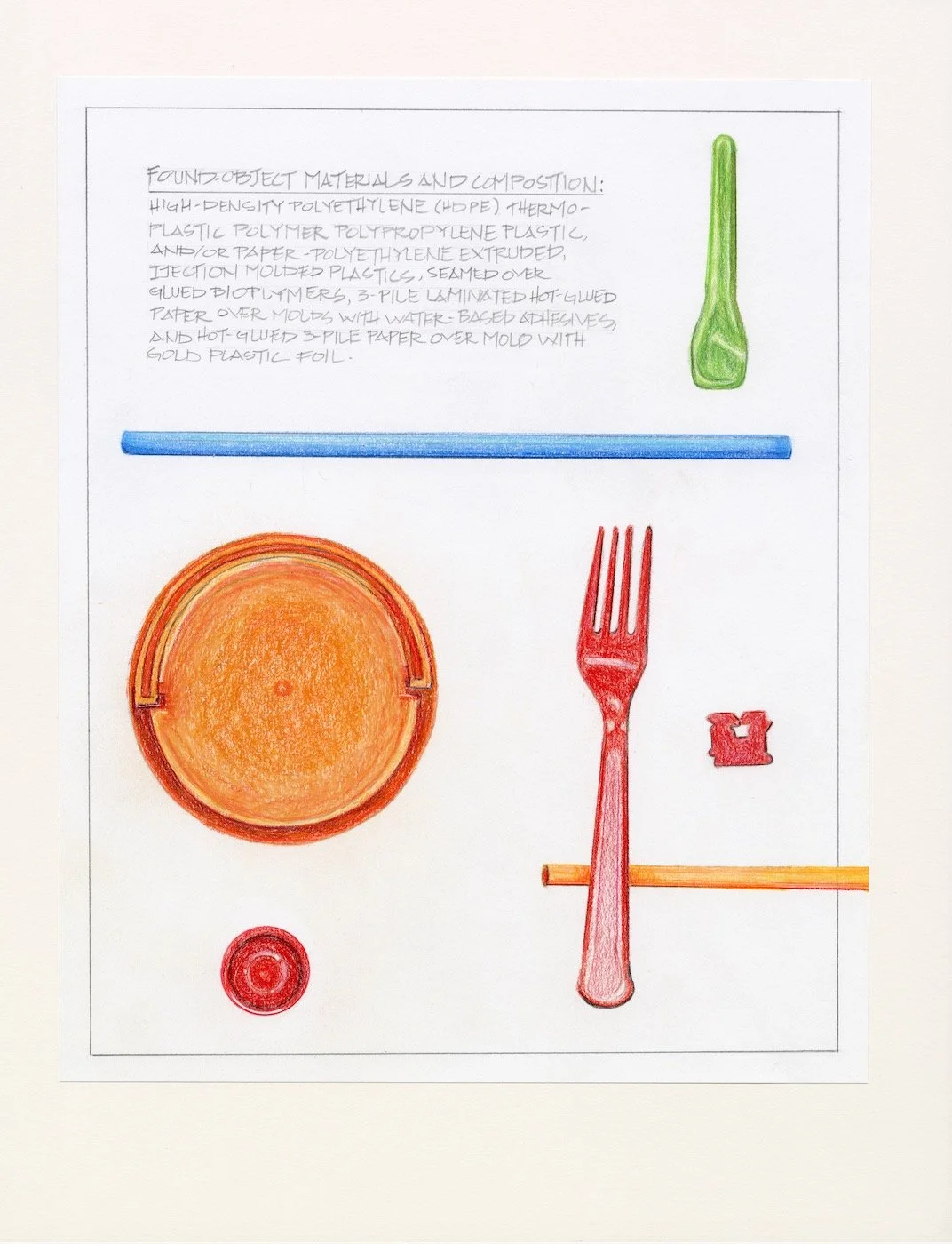 Her drawings and collections reflect on our fleeting use of materials designed to last centuries, revealing a profound dissonance between convenience and consequence.